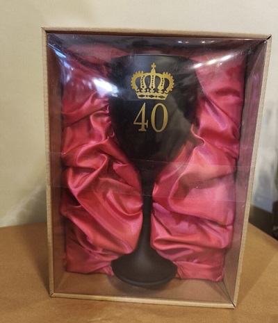 - Personalizowana butelka whisky z grawerem „40 i nie do zdarcia”.