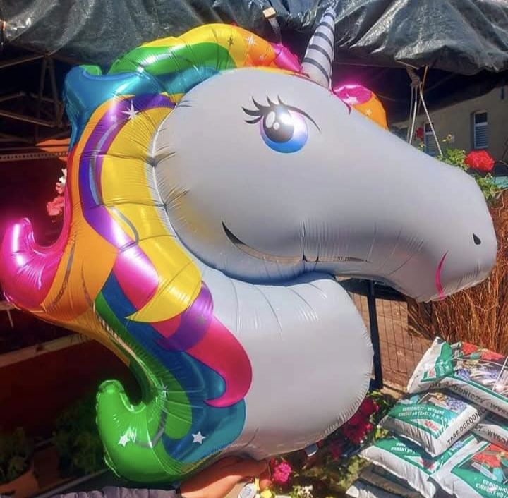 Balon foliowy jednorożec 24″.Duży efektowny balon foliowy w tęczowych barwach doskonały prezent dla dzieci w wieku 1-12 lat.