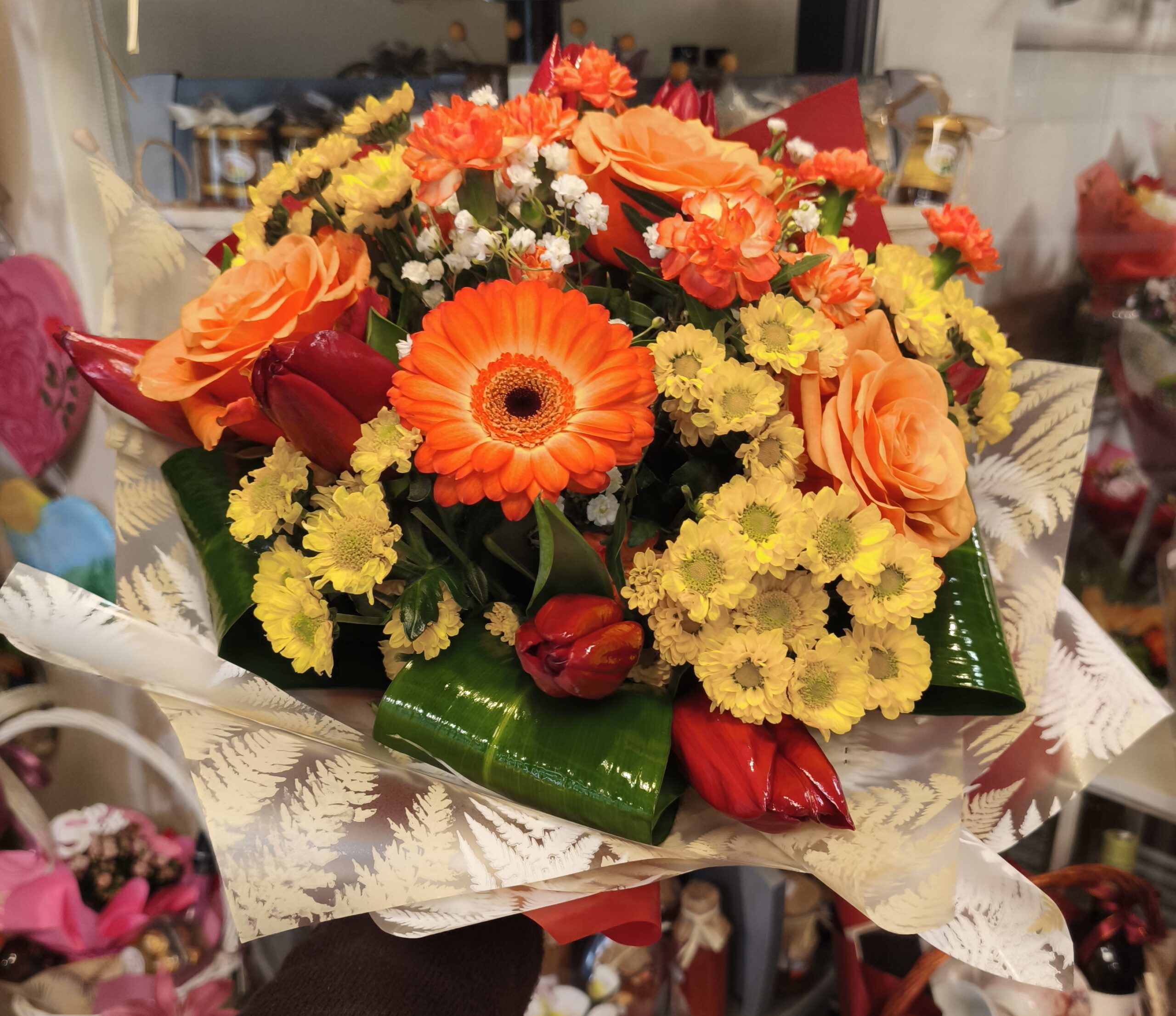 Wiosenny okolicznościowy bukiet kwiatów ,wersja średniej wielkości.