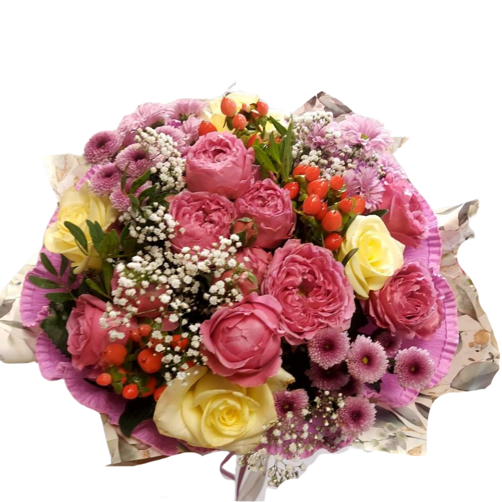 - Eleganckie opakowanie – bukiet zapakowany w wysokiej jakości dekoracyjny papier florystyczny, przewiązany ozdobną wstążką.