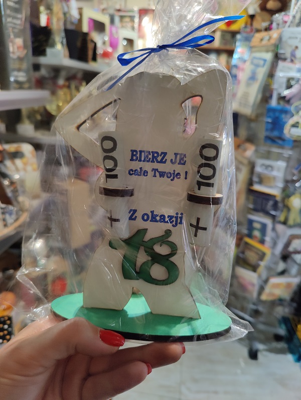 Stojak statuetka na 18te urodziny, idealna na śmieszny prezent. Pakowana w ozdobną folie. Wymiary: długość 5cm, szerokość 13cm, wysokość 19cm
