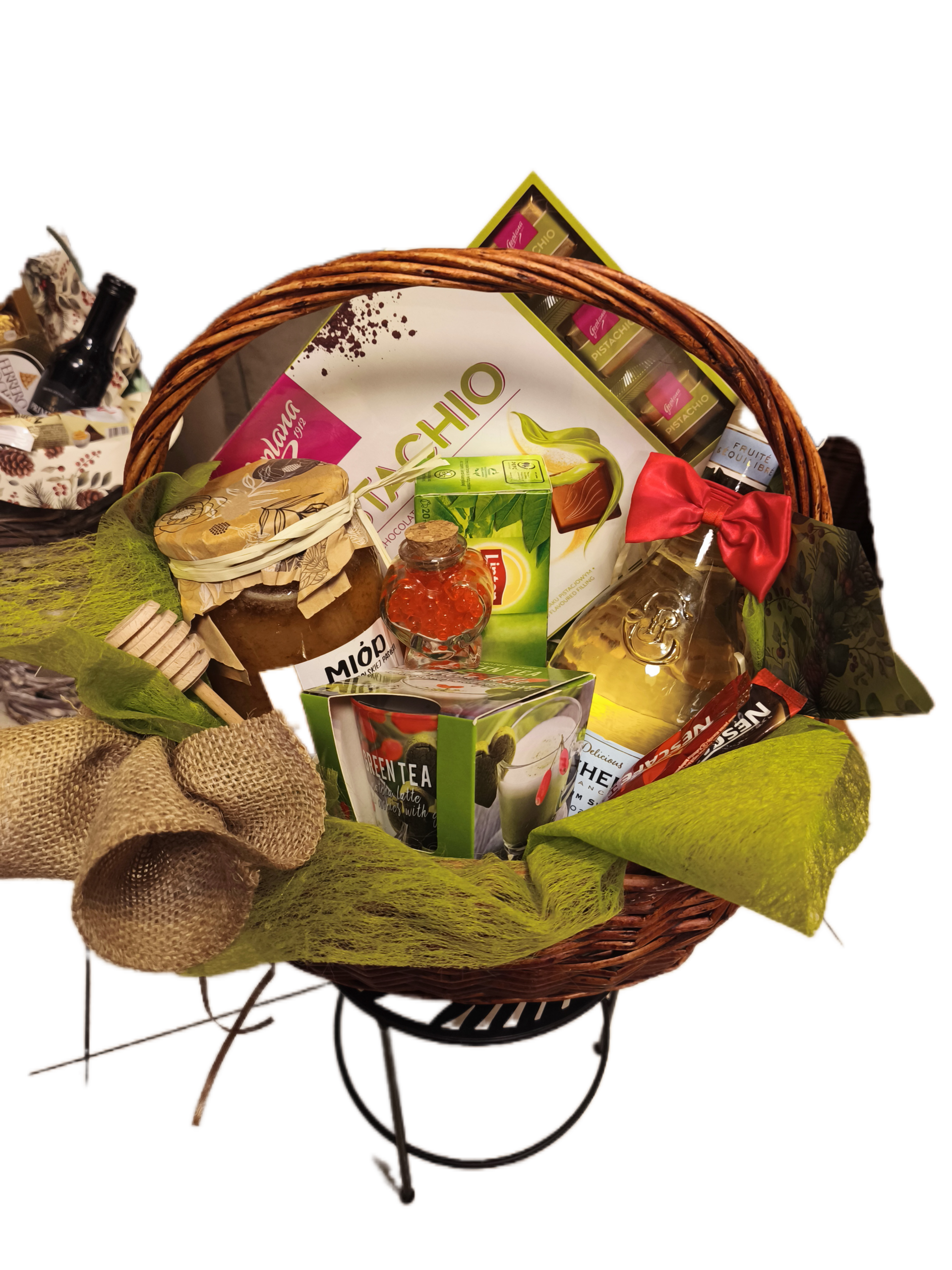 Kosz prezentowy „Pistacja” to doskonały wybór dla osób ceniących smak, estetykę i naturalną elegancję – prezent, który zawsze robi dobre wrażenie.
