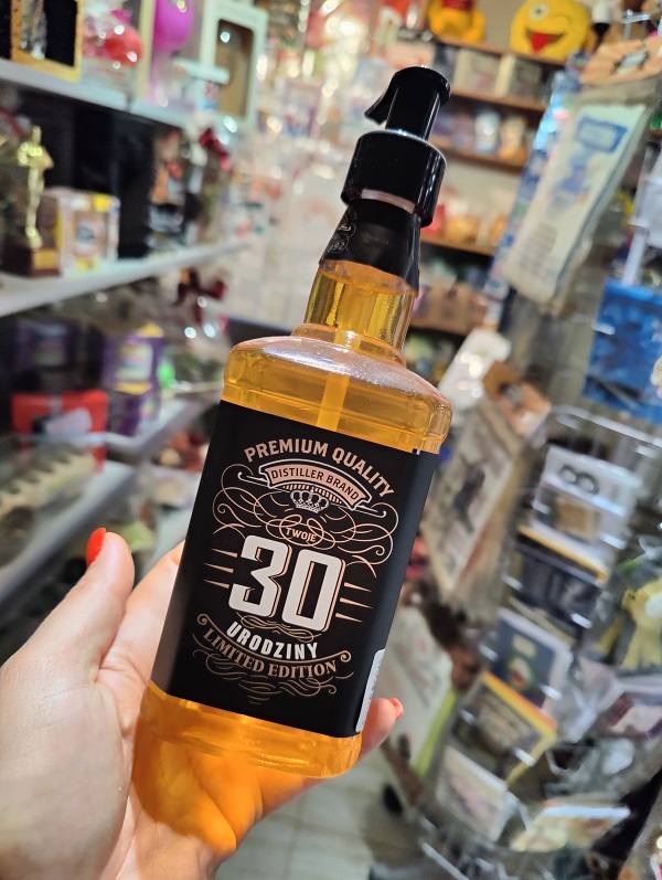 Produkt posiada stylową, ekskluzywną etykietę oraz bezpieczne zamknięcie. Pojemność 500ml, zapach whisky