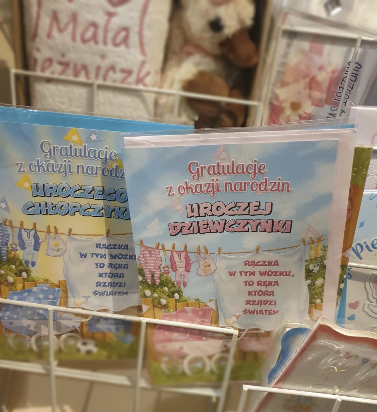Kartka okolicznościowa z napisem Gratulacje z okazji narodzin dziecka ,format A5.Kartka w środku wypełniona jest życzeniami z jakże pięknej tej okazji. Kartki dostępne są z okazji narodzin dziewczynki oraz narodzin chłopczyka.