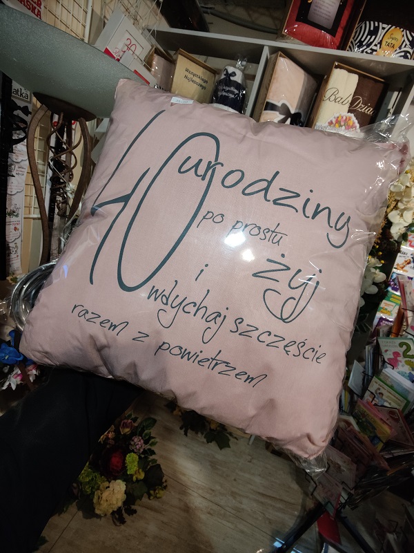 Dekoracyjna poduszka okolicznościowa o wymiarach 40x40cm. Zapakowana w folie – gotowa do wręczenia. Poszewka zdejmowana