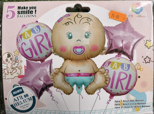 W skład zestawu wchodzą: 1szt. balon foliowy bobas 75cmx50cm, 2szt. balon foliowy gwiazdka 45cm, 2szt. balon foliowy okrągły 45cm