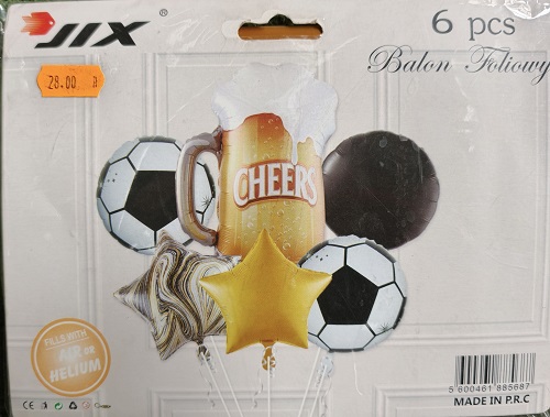W skład zestawu wchodzą: 1szt. balon piwo 70cm, 3szt. balon okrągły 40cm, 2szt. balon gwiazdki 40cm