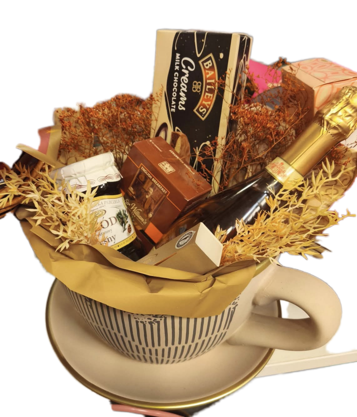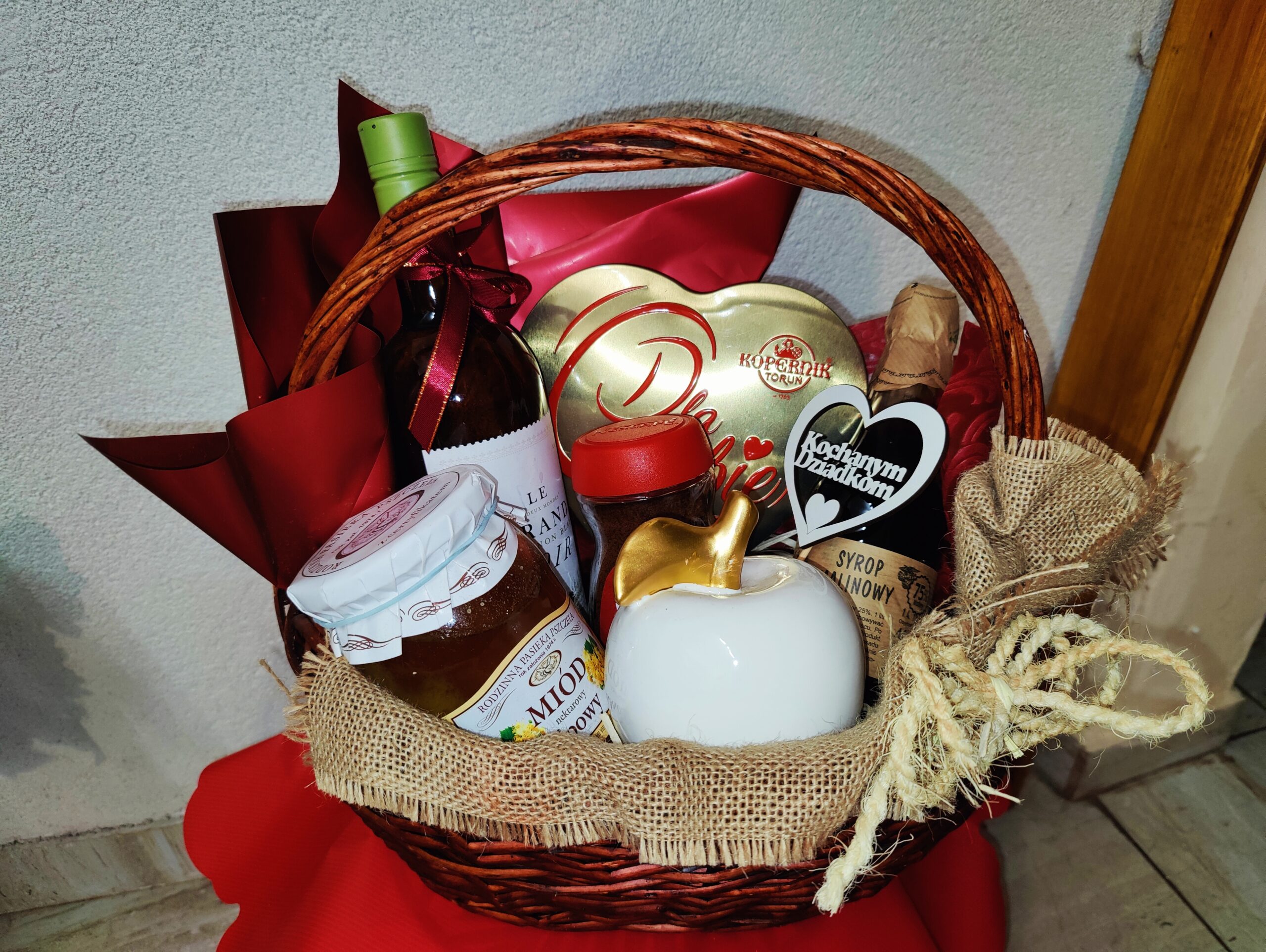 - Słodkie i domowe akcenty: Kosz pełen domowych przetworów, miodów, konfitur, ręcznie pieczonych ciasteczek albo pudełko ulubionych czekoladek.
